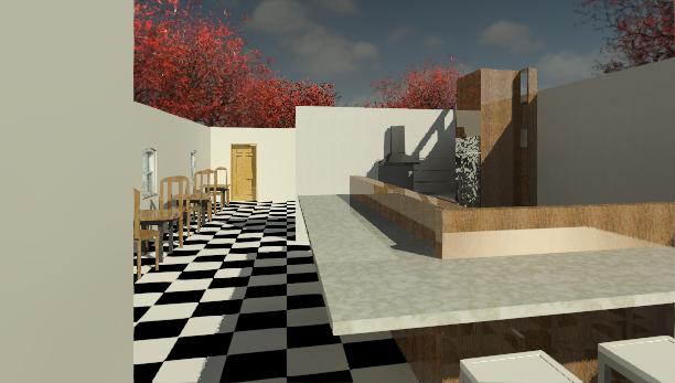 After receiving the feedback, I was rethinking the style of interiors. I added the mirrors on the wall and I changed the number of doors from one to two. The below pictures are rough rendering images and it was rendered using only sunlight because it has no roof and inside light. The next step was making roofs and lights so I talked that with Debs who is my lecturer and I got some tutorials to video about the making ceiling, roofs and lights. That was helpful in finishing the model for next week.