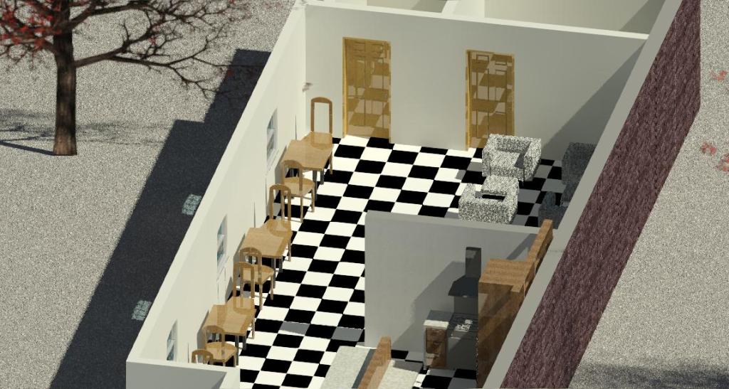 Below is a design drawing for a new cafe and I began modelling with this plan on Autodesk Revit.