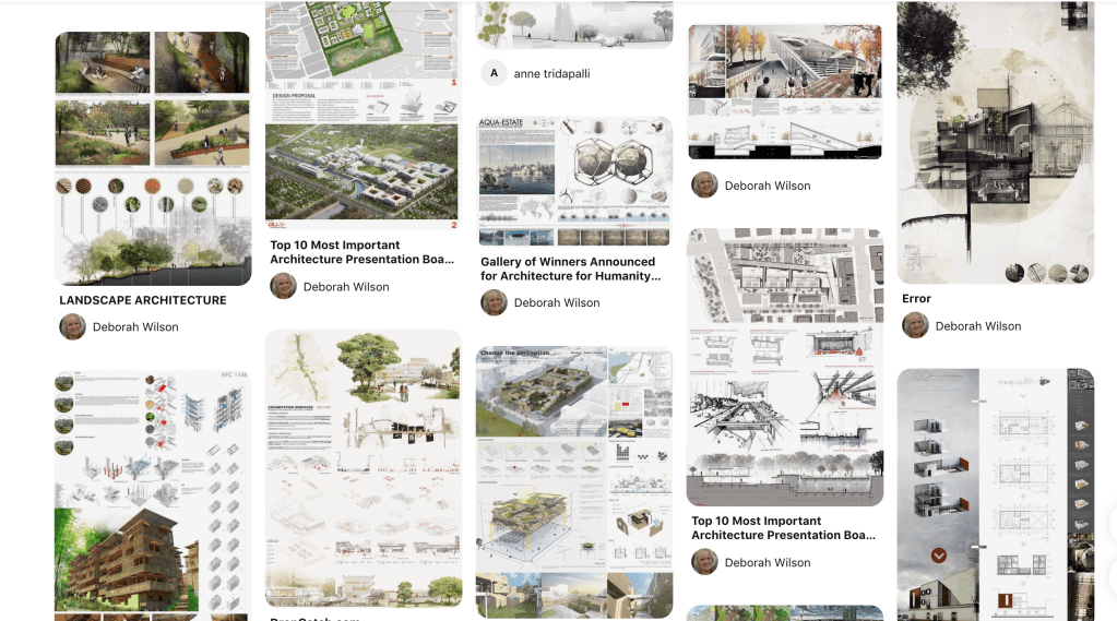 I also shared my tasks with Debs who is my lecturer in the tutorial. She gave me some Pinterest’s links that show Presentation Boards for Arch Vis. https://www.pinterest.co.uk/debswilson/architectural-visualisation/presentation-boards/