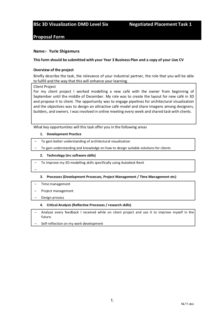 This project is a part of the assignment of the university’s module named “Negotiated Design Placement”. The purpose of this module is to undertake the major negotiated task to form the backbone to your experience of Level 6 of the programme. It will normally take place with an industrial partner whom the student has identified and approached to host their learning task. Students can choose work placement or a client project throughout this semester. I was not able to be applied to the company for which I want to work for doing a long internship this semester but as an alternative choice, I’ve found a client who is relative to architectural visualization. Architectural visualization is the most interesting area for me so I decided to work with this client.